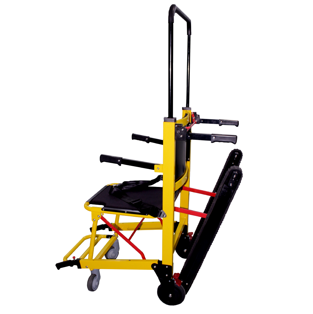 Estructura cuadrada en aleación de metales, asiento y espaldar en material impermeable, manijas forradas en PVC y las inferiores extendibles. Pasamanos de altura graduable, ruedas traseras de 5” con freno y ruedas delanteras de 2”, con orugas de caucho para escalera, correas de sujección para pacientes y descansa pies. Completamente plegable, ideal para transporte rápido y seguro de pacientes. Medida extendida: 165×48.5×120 cms, Medida Plegada: 109×48.5×25 cms. Capacidad de carga: hasta 159 kgs, Peso: 21 Kg.