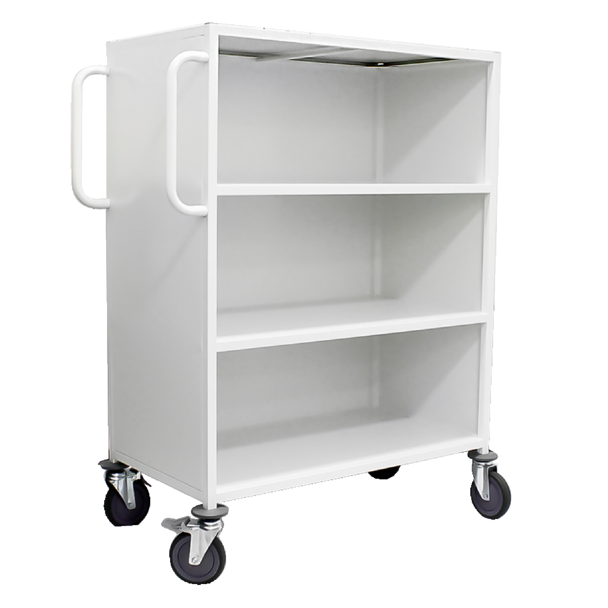 Carro para Transporte de Ropa Limpia de tres entrepaños y superficie superior en ABS