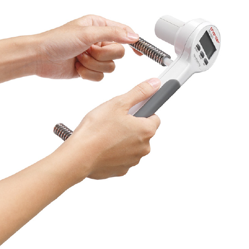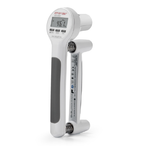 Diseñado para medición, evaluación y entrenamiento de la fuerza de antebrazo, muñeca y mano. Cuenta con una pantalla LCD de 0.5”, 4 dígitos. Tiene capacidad de medición: 20 kg (resorte rojo), 40 kg (resorte verde), 80 kg (resorte azul). Graduación: 0.1 kg / 0.2 lb. Precisión: ±0.2 kg / ±0.4 lb. Unidades de medida: kg / lb. Dimensiones del producto: 212 (ancho) x 55 (fondo) x 101 (alto) mm y peso de 0.33 kg. Grip span: 64 mm. Cuenta con batería recargable RCR123A de litio-ion. Indicadores: modo, unidad, porcentaje y batería baja.Tiene funciones: Real mode: visualización dinámica de fuerza en tiempo real. Zero mode: reinicio a cero. Max mode: registro de fuerza máxima. Avg mode: promedio de fuerza entre mano derecha e izquierda. Count mode: recuento de número de veces que se alcanza fuerza objetivo.Accesorios incluidos: Estuche de transporte. Juego de 3 resortes (20 kg rojo, 40 kg verde, 80 kg azul). Batería recargable RCR123A.