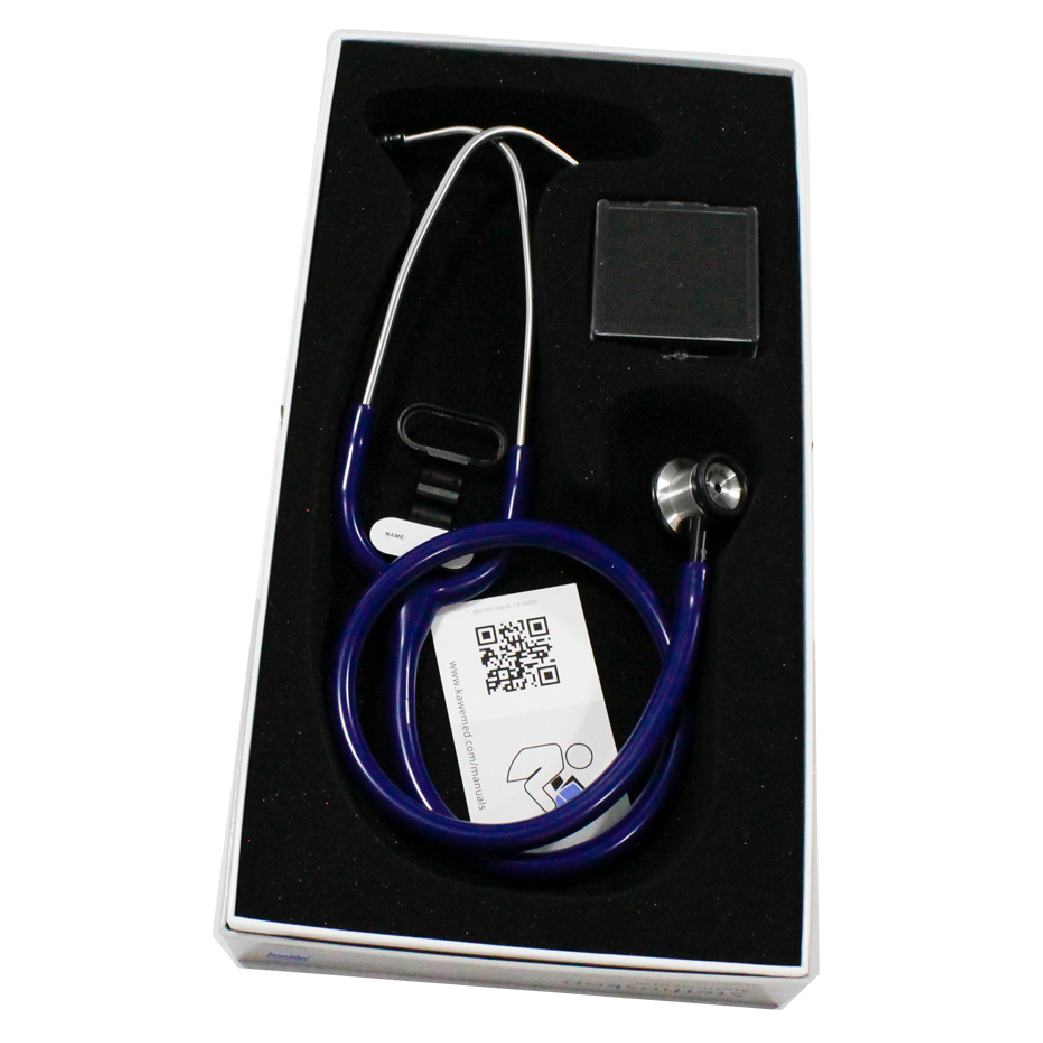 Uso neonatal. Campana doble para alta y baja frecuencia con aros quita fríos. Fabricado en acero inoxidable de alta calidad. Alta acústica para uso profesional. Diámetro de 20 mm. / 28.5 mm. Tubo en ye fabricado en silicona grado médico. Peso de 128 gramos. Longitud total de trabajo de 78 cms. Presentación en caja rígida con espuma.