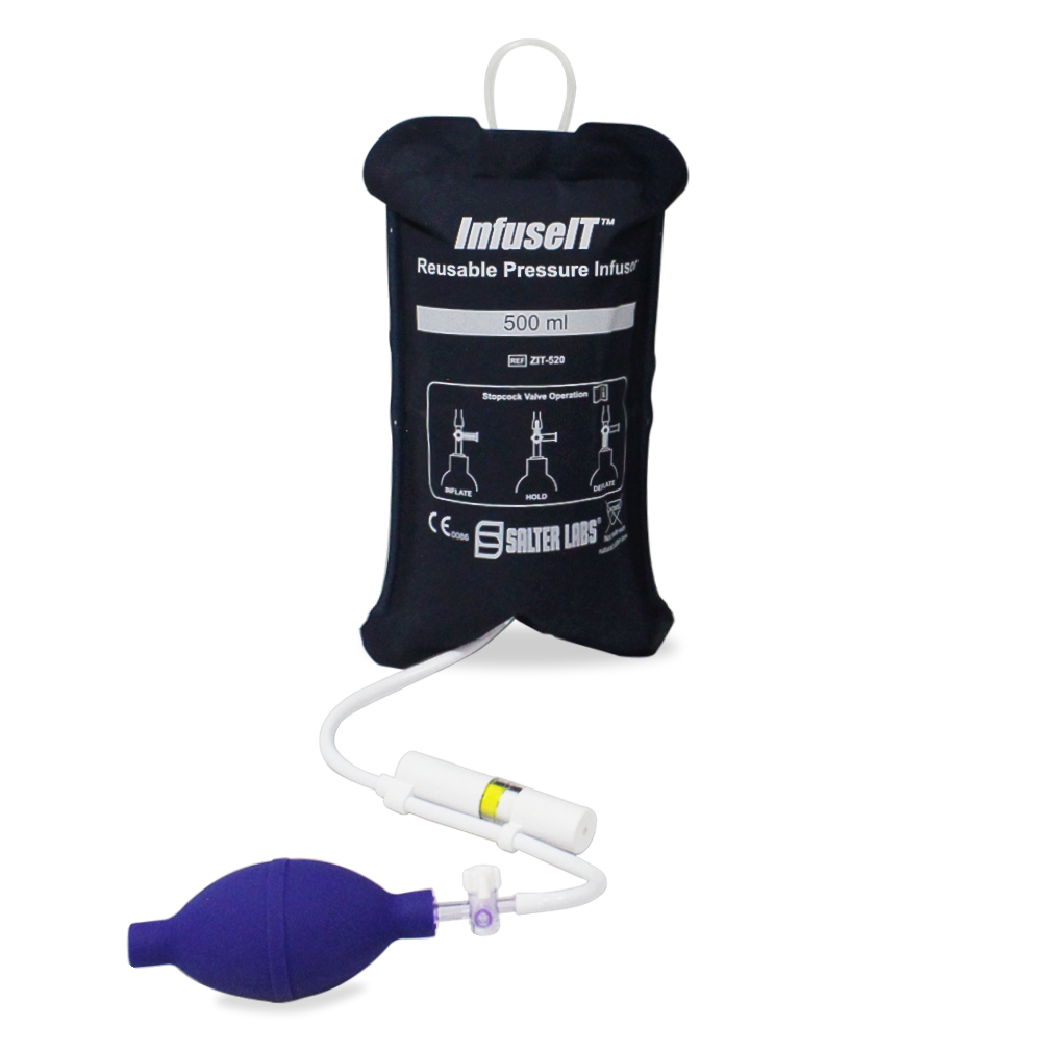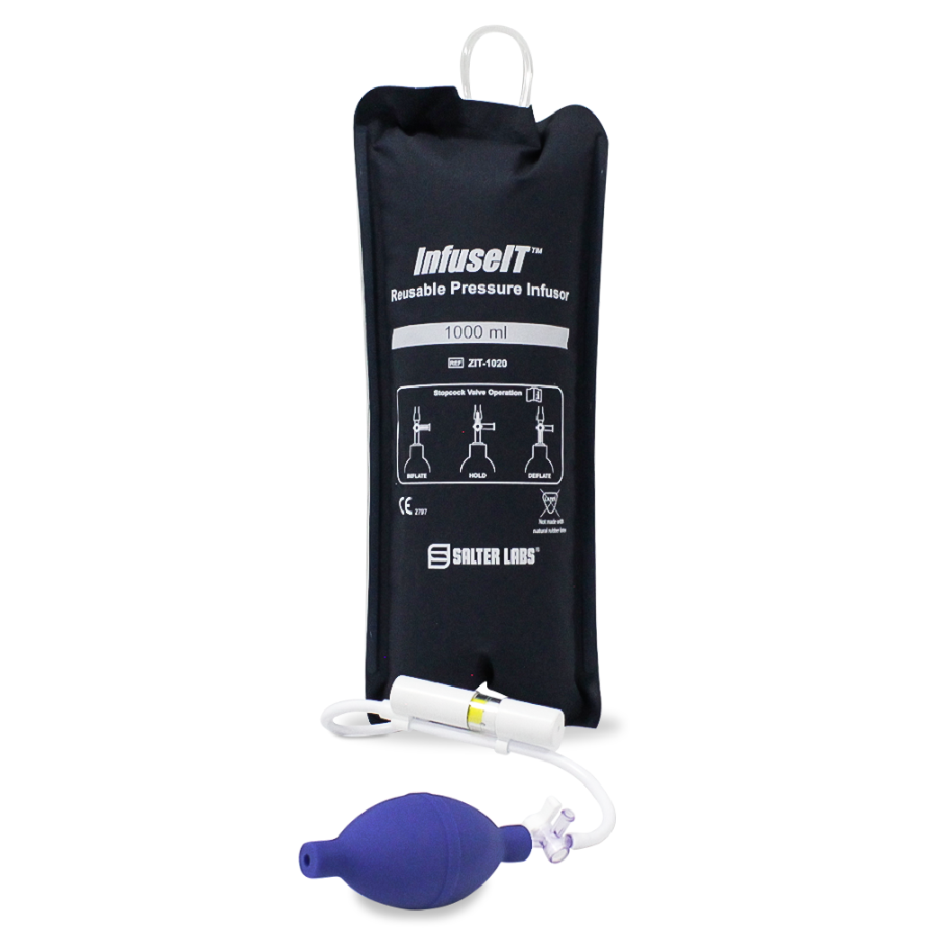 Ideal para infusión de sangre o soluciones. Fabricado en Nylon de alta resistencia. Gancho incorporado para bolsas estándar con funda transparente para la visualización del líquido. El infusor contiene un manómetro hasta de 300 mm/Hg con visualización 360°. Es completamente lavable con válvula de presión, pera de insuflación con válvula, libre de latex.