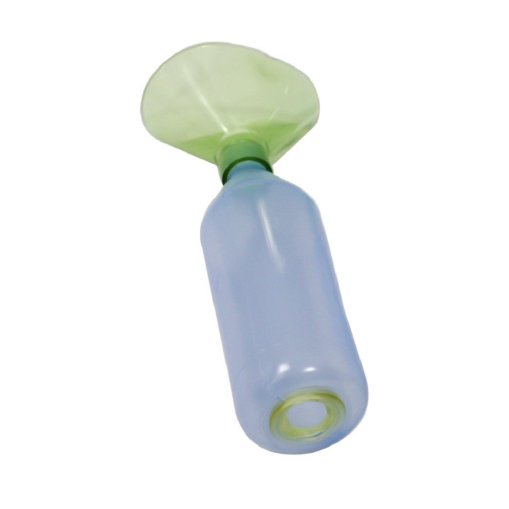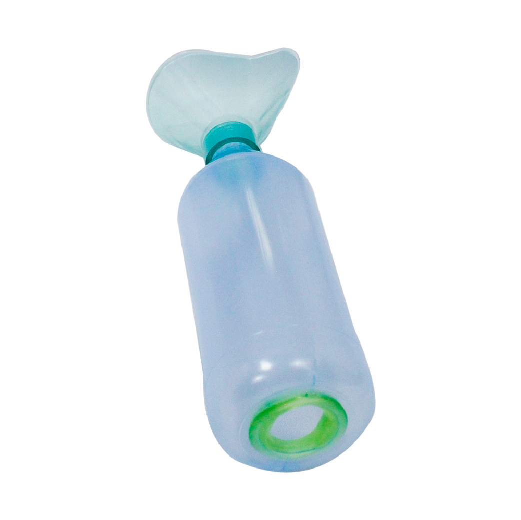 Para inhalación de medicamentos por aerosol a presión, con mascara transparente. Espacia el medicamento a presión con el fin que no quede adherido al paladar y garganta del paciente. Botella transpartente azul claro, puerto para cualquier inhalador y boquilla incorporada.
