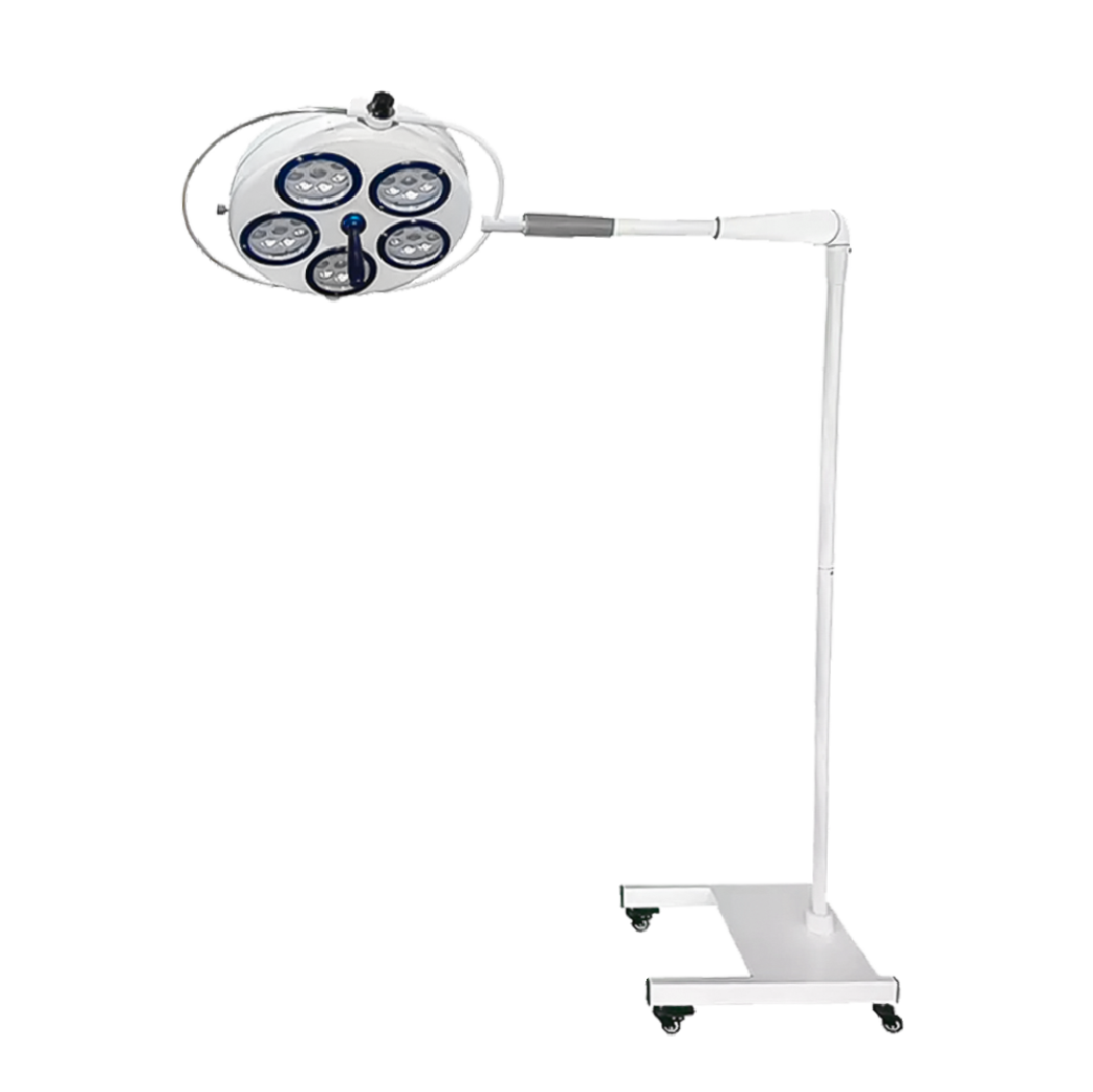 Iluminación LED fría sin sombras con luz uninforme y homogénea en la cavidad. Su iluminación alcanza >100.000 LUX, con temperatura / color 4.800 + – .300 K, cuenta con un tamaño de iluminación de 60 -220 mm. y una profundidad de iluminación de 500 mm, la irradiación total es de 480 W/M2. Incluye índice de reducción del color de 92. El diámetro del satélite de la lámpara es de 450 mm. La potencia del bulbo LED es de 3.2 V/1 W y una vida útil de >30.000 h. La alimentación eléctrica es de 110 voltios 50/60 hz. Contiene un brazo de suspensión estable, un mango desechable, base rodante de 3” y manual de uso. Altura libre necesaria: 300 cm. Altura útil máxima del satélite: +- 200 cms