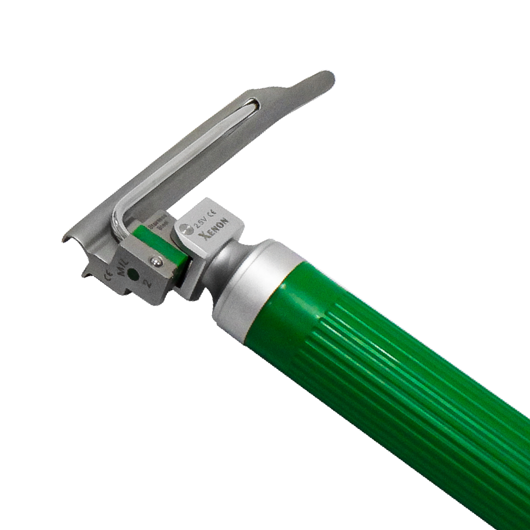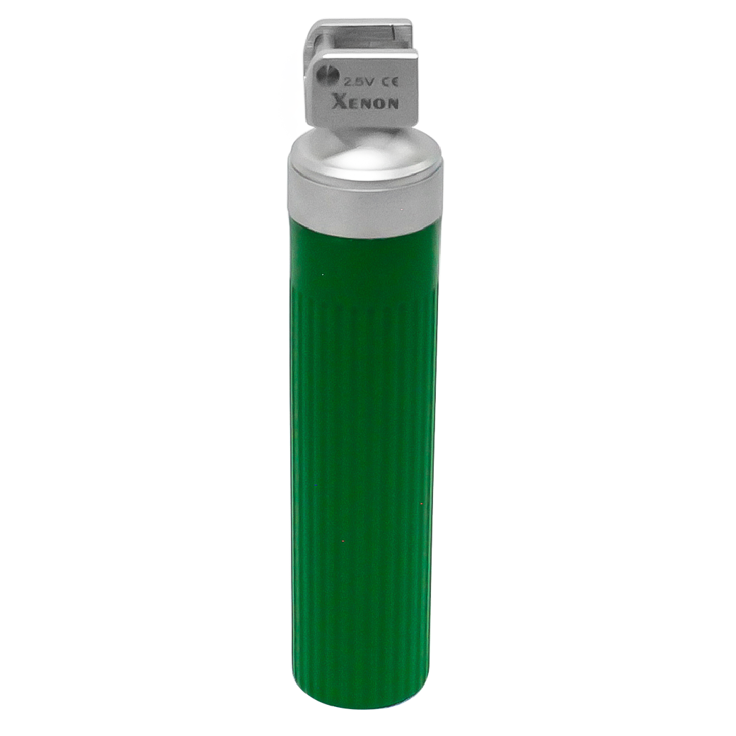 Mango para laringoscopio con sistema de iluminación de fibra óptica. Iluminación Xénon 2.5 Volt.Fabricado en PVC (plástico rígido). Estriado para mejor agarre. Funciona con baterías convencionales medianas. Incluye bulbo de iluminación incorporado.