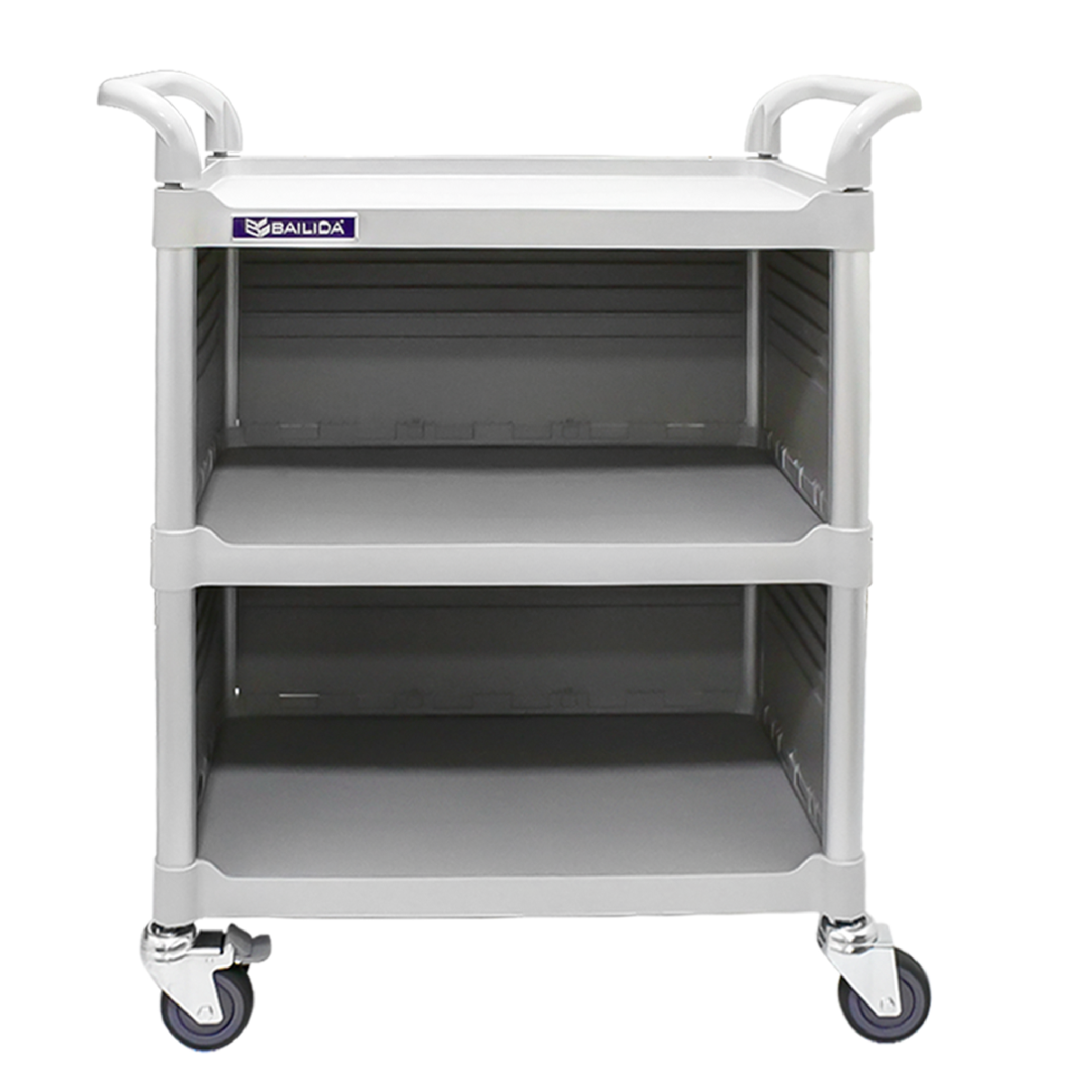 Tres entrepaños, paneles laterales y posterior en PVC. Estructura tubular en aluminio de 1″. Cubierta y entrepaño con rebordes. Ruedas giratorias de 3″ antiestáticas. Pasamanos o manijas en polipropileno. Resistente a soluciones corrosivas. Completamente desarmable. Medidas: 90 cm x 76 cm x 49 cm.