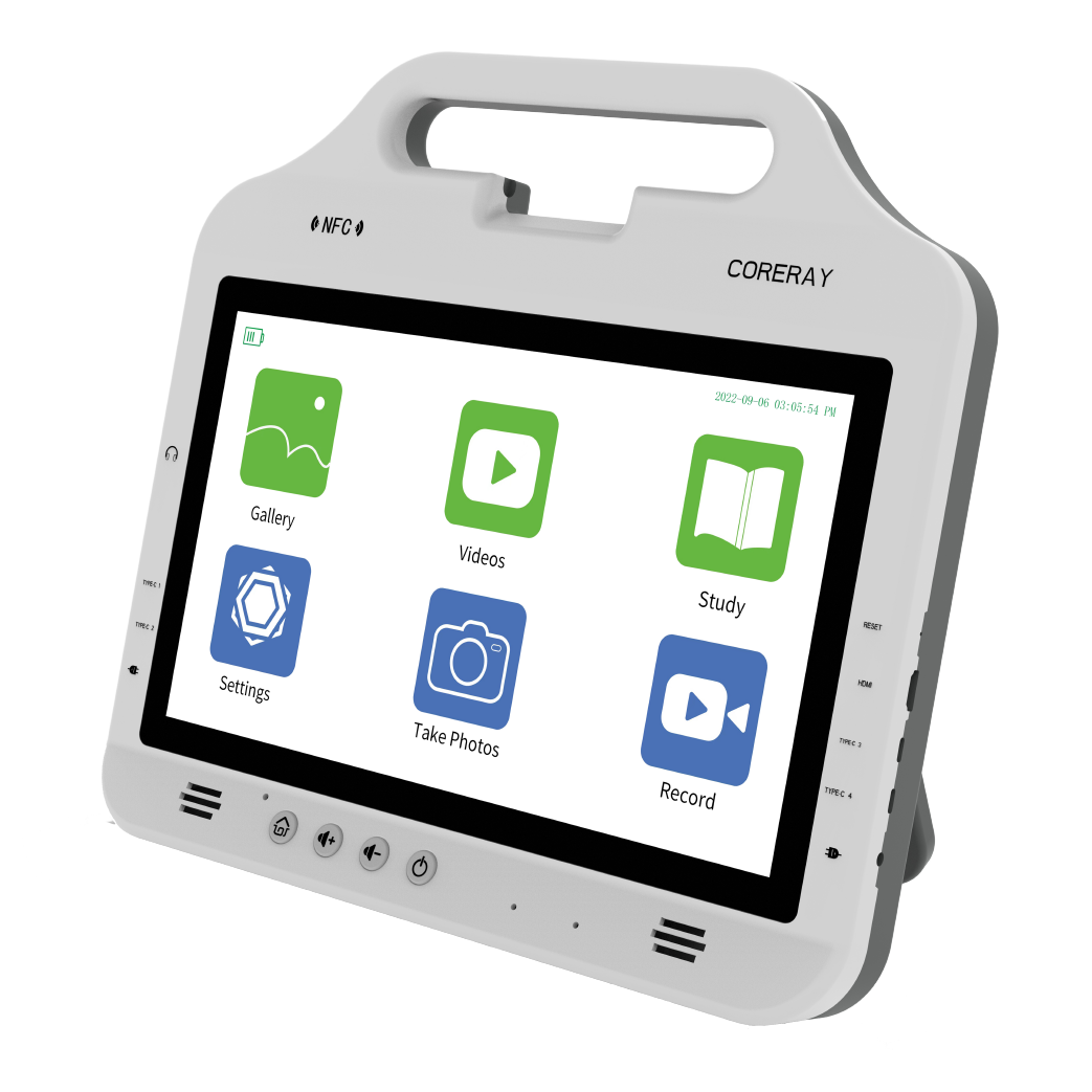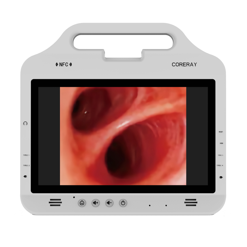 El monitor cuenta con una imagen HD de 1280 * 720 RGB. Pantalla táctil de 14″. Cuenta con conexión WiFi entre equipos compatibles. Encendido en 5 segundos. Almacenamiento de fotos y videos durante el procedimiento. Ideal para hospitales universitarios. Peso ligero de 2.5 lb. Batería recargable de litio. Puede ser instalado en base móvil CoreRay. Workstation Para videolaringoscopia. Accesorio Para videolaringoscopia Exploratoria. Accesorios: Cables Conexión para equipos CoreRay – Batería Recargable (Incorporada) – Manual De Operación.