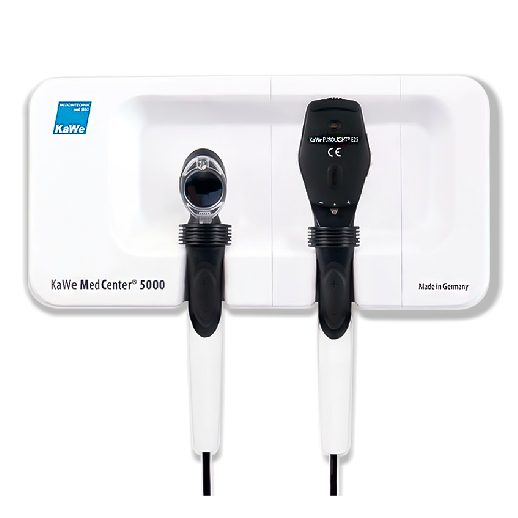 El Set para Diagnóstico de los sentidos Med Center es un equipo para instalación a la pared. Cuenta con módulo transformador de 100 – 230 v 50/60 hz. Incluye dos mangos con cable espiral ergonómicos, modo de espera (memoria de función de luz), interruptor táctil regulable para control de luz. Encendido y apagado automático y sistema anti-robo. Su oftalmoscopio Eurolight E25 cuenta con iluminación XENON/Halógena de 5 aperturas (de dial), lente de corrección dial de -36 a +35 dioptrías y 71 pasos de dioptrías simples y un filtro polarizador. Su otoscopio Piccolight cuenta con iluminación LED y magnificación 3x. Incluye: 10 espéculos de oído , 1 Kit de instalación a la pared y 1 manual de usuario.