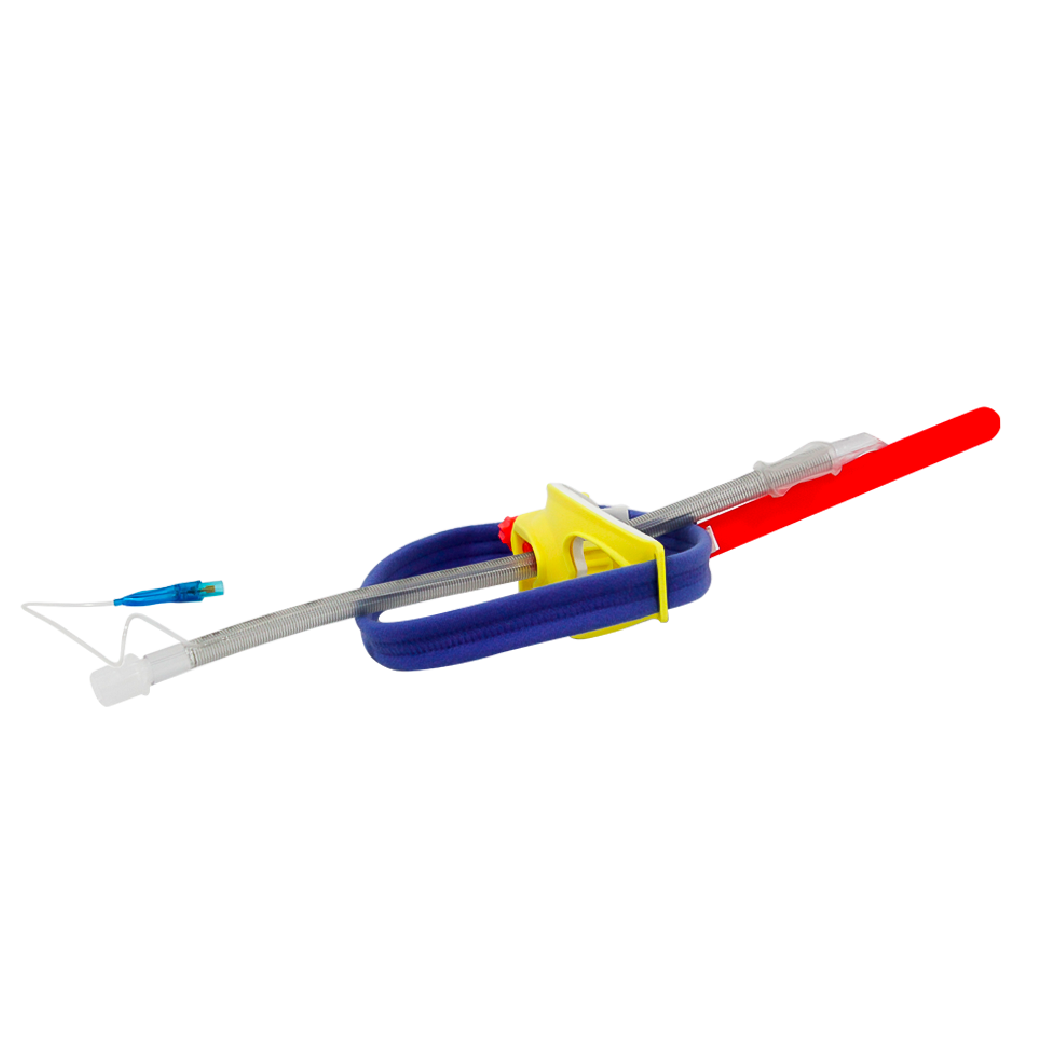 El sujetador para tubo endotraqueal está diseñado para dar firmeza y estabilidad al tubo respiratorio cuando está localizado en la tráquea del paciente. Ideal para usar en emergencias, anestesiología, ambulancias y maniobras de reanimación cardio-pulmonar. Se puede emplear en el hospital o en ambulancias durante el traslado de pacientes intubados. El dispositivo también puede ser usado para sujeción de máscaras laríngeas. – Este dispositivo debe ser usado por anestesistas o profesionales de la salud previamente capacitados y entrenados para este fin. Orificio para cánula de succión o acceso bucal general. Materiales: Cinta de poliester y PVC, longitud de 65 cms. Fabricado en PVC rigido con recubrimiento interior de espuma.