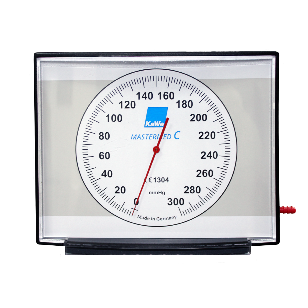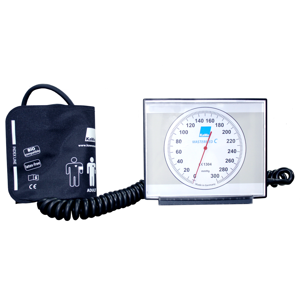 Modelo móvil de pared, tablero amplio de 150 mm, con escala de 0 – 300 mm/hg. soporte de montaje giratorio 80°, compatible con módulo Med Center 5000, manguera en espiral de 3 mts, incluye brazalete termosellado 2 vías rango 27.5 – 36.5 cms, pera de insuflación con válvula. Contiene un compartimiento posterior para accesorios. Cuenta con un estándar de calidad 93/42/EEC – ISO81060-1 e incluye manual de operación.