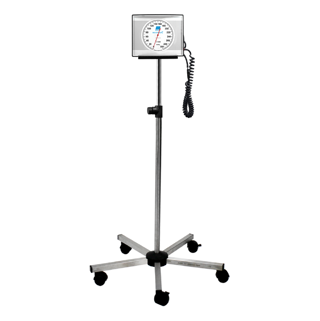 Modelo móvil de pedestal, con escala de 0 – 300 mm/hg. Escala con intervalo de 10 mmHg. Resolución 2 mmHg. Manguera en espiral de 3 mts, incluye brazalete termosellado 2 vías rango 27.5 – 36.5 cms, pera de insuflación con válvula. Contiene un compartimiento posterior para accesorios, soporte estable tipo araña de 5 ruedas de 2″, dos de las ruedas con freno. El soporte del pedestal está fabricado en acero inoxidable de alta calidad y las juntas plásticas resistentes. Su altura graduable es entre 85 – 130 cms. Cuenta con un estándar de calidad 93/42/EEC – ISO81060-1 e incluye manual de operación.
