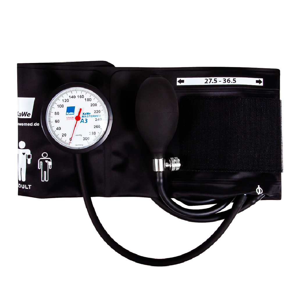 Uso adulto con protección contra caída (> 1 metro) , manómetro de escala de 0 – 300 mm/hg, pera de insulfación con válvula y brazalete termosellado de 2 vías rango 27.5 – 36.5 cms. Cuenta con certificación ISO81060-1 de protección contra choques y estándar de calidad 93/42/EEC, libre de latex con bolsa de bolsillo y manual de operación.