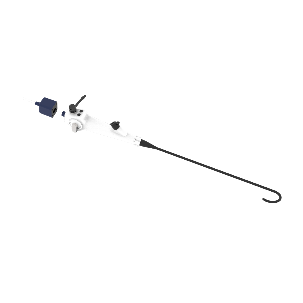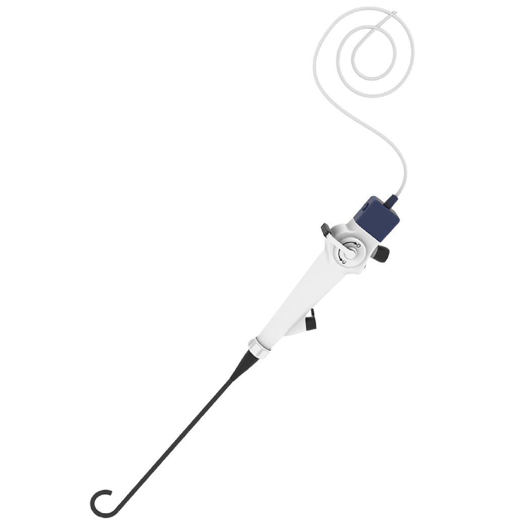 Tubo de inserción con longitud de trabajo de 600 mm y diámetro de inserción de 5.2 mm. Campo de visión de 120°, canal de trabajo de 2.8 mm, profundad de campo 3 ~ 50 mm, ángulo de visión arriba ~ abajo 180° / 180°. Material tubo de inserción PEBAX (tubo trenzado), cubierto de ABS. Resolución de 160.000, color temperatura de 5000 k, conexión a monitor fácil y rápida (lock design), botón de succión.