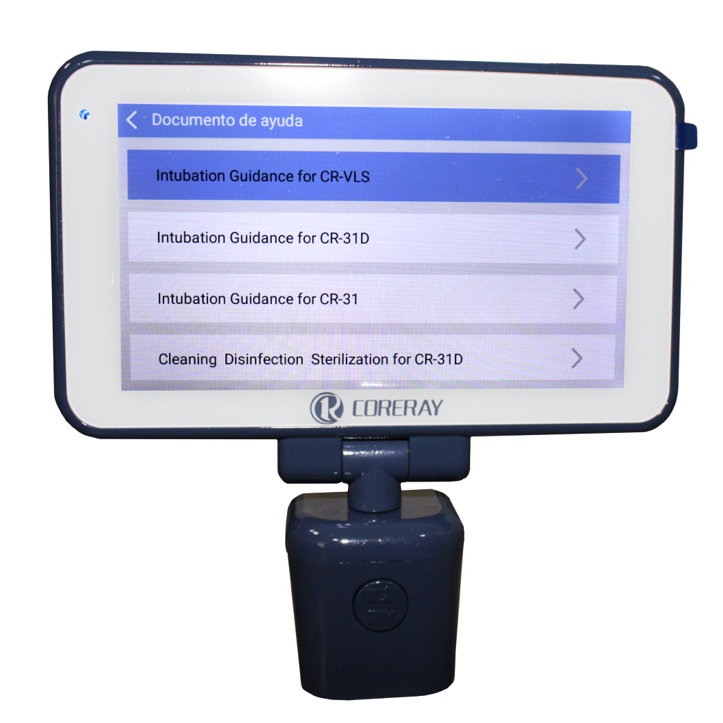 Videolaringoscopio desechable con hojas rectas y curvas, monitor touch screen a color de 4.5″, seleción de menú táctil full vision. Información en pantalla de foto, video, fecha y hora. Rotación del monitor hacia la derecha hasta 180° y hacia la izquierda hasta 90°. Tiene un ángulo de visión de 60°. Capacidad de memoria de 16 GB, resolución de la cámara de 1280 * 270 px y con función de foto y vídeo. Tiene puerto USB. Batería recargable de litio, indicador de batería baja y de memoria llena. Tiempo de uso de batería a full carga es de 3 horas. Dos mangos reusables para hojas desechables rectas y curvas.